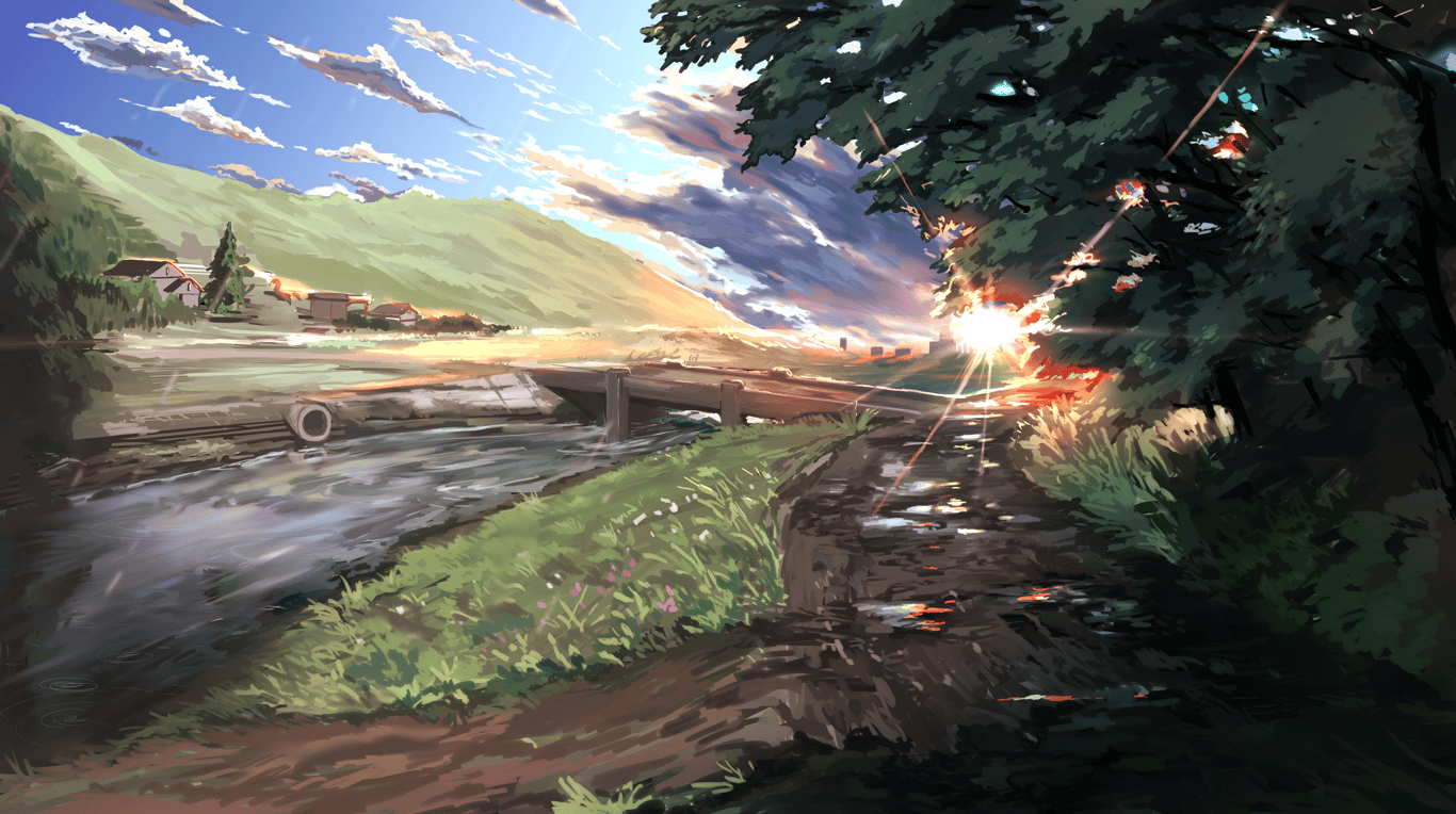 これは実際に白河に存在する場所です。小さい川みたいなのが通ってて、その横に歩道があるみたいな。僕が